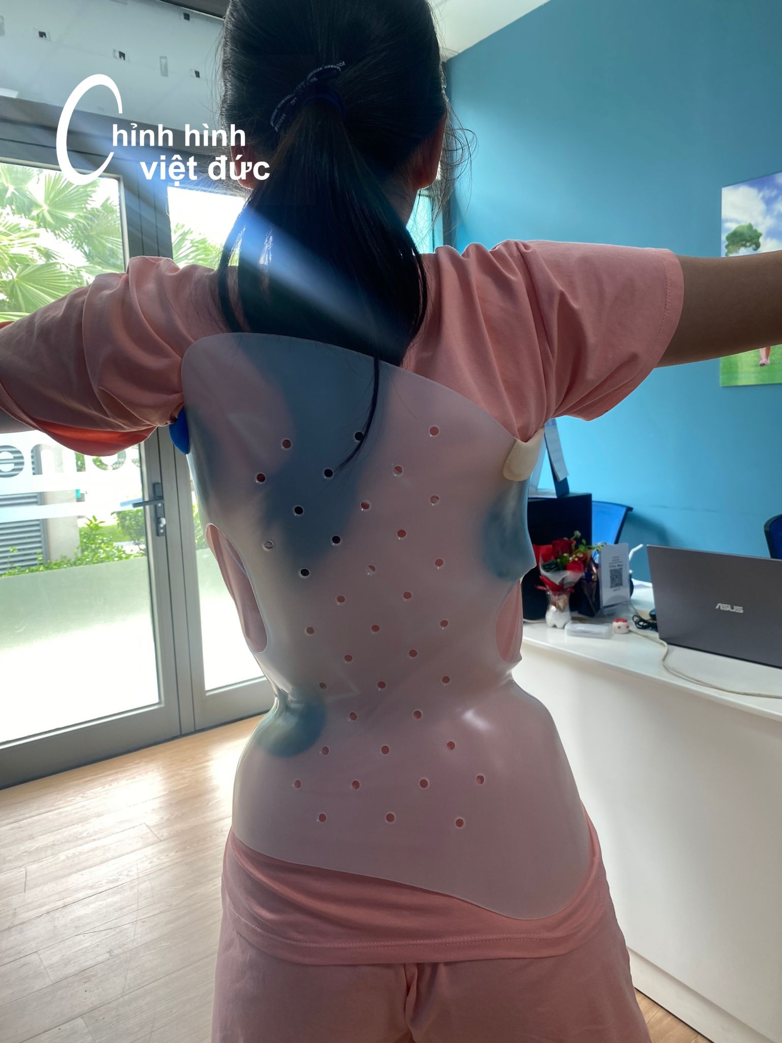 Quy trình này đảm bảo rằng áo sẽ vừa vặn và mang lại hiệu quả tốt nhất. Mỗi chiếc áo đều được thiết kế riêng biệt, dựa trên số đo và tình trạng cụ thể của từng trẻ. Dưới đây là một chiếc áo chỉnh hình vừa được Việt Đức hoàn thiện 👇